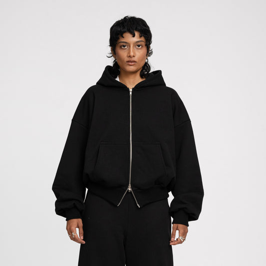 Boxy Ultra Heavyweight Double Zip Hoodie (Black)