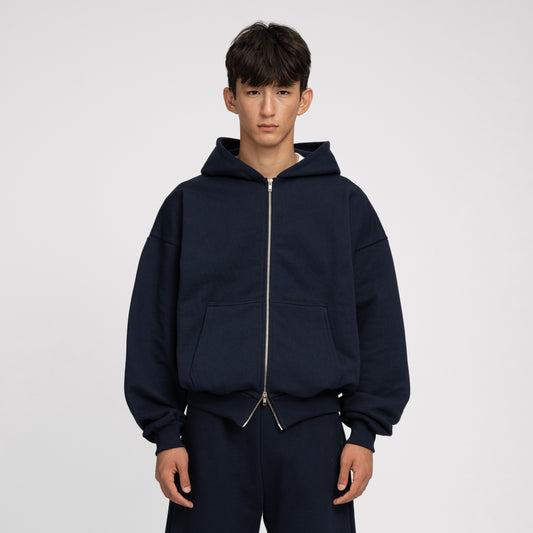 Boxy Ultra Heavyweight Double Zip Hoodie (Dark Navy)
