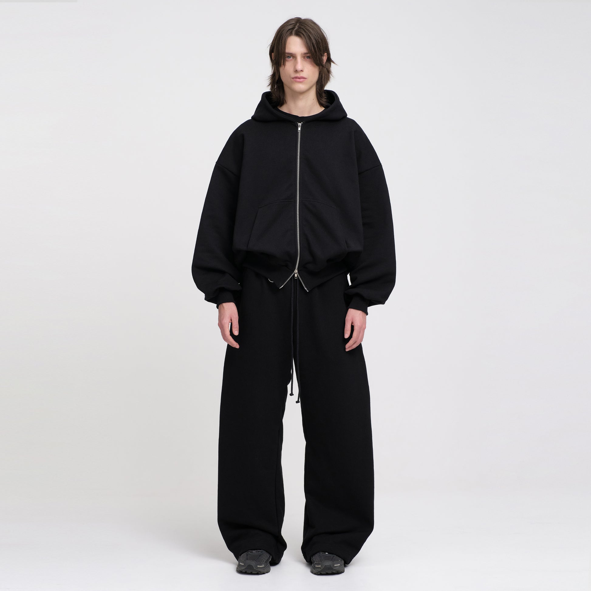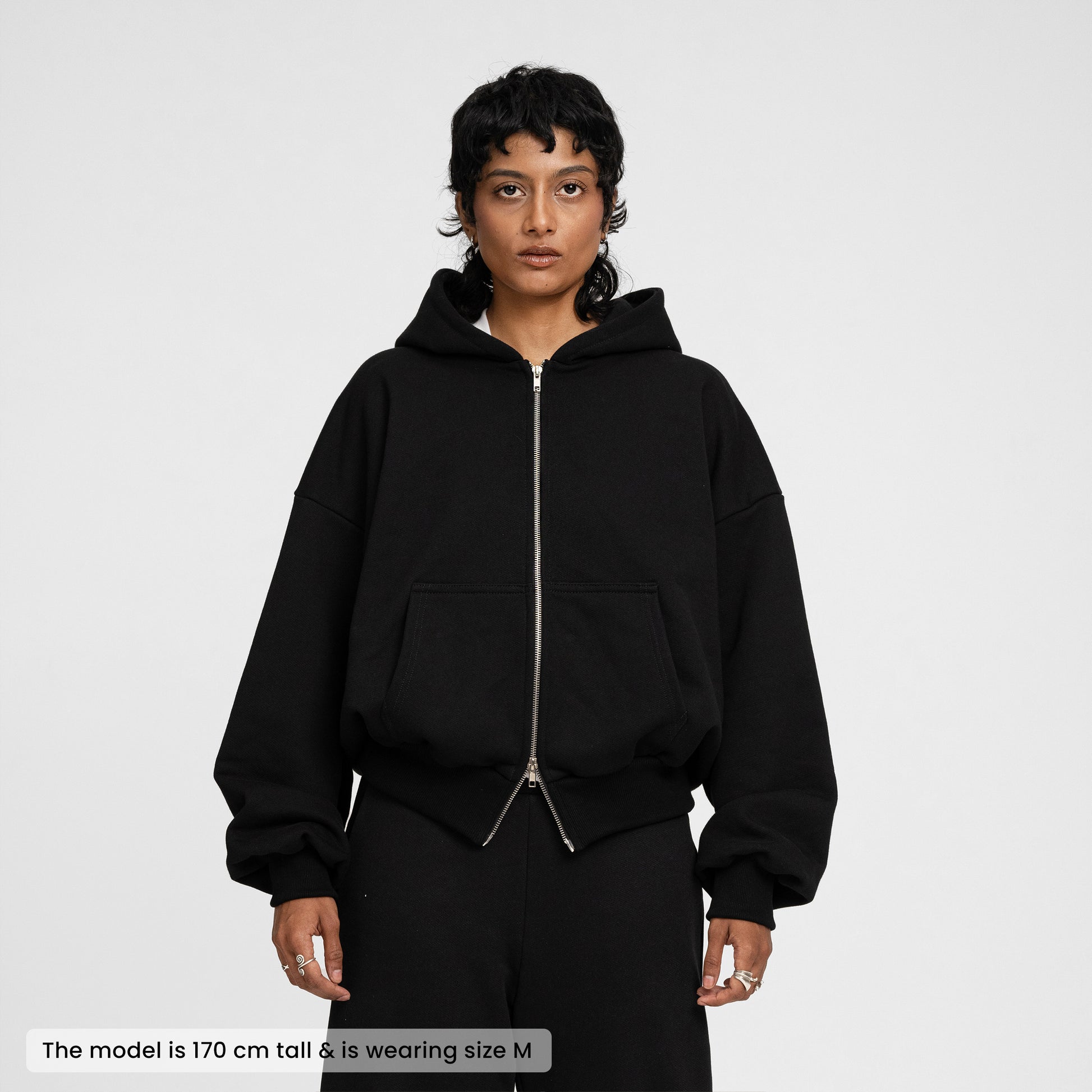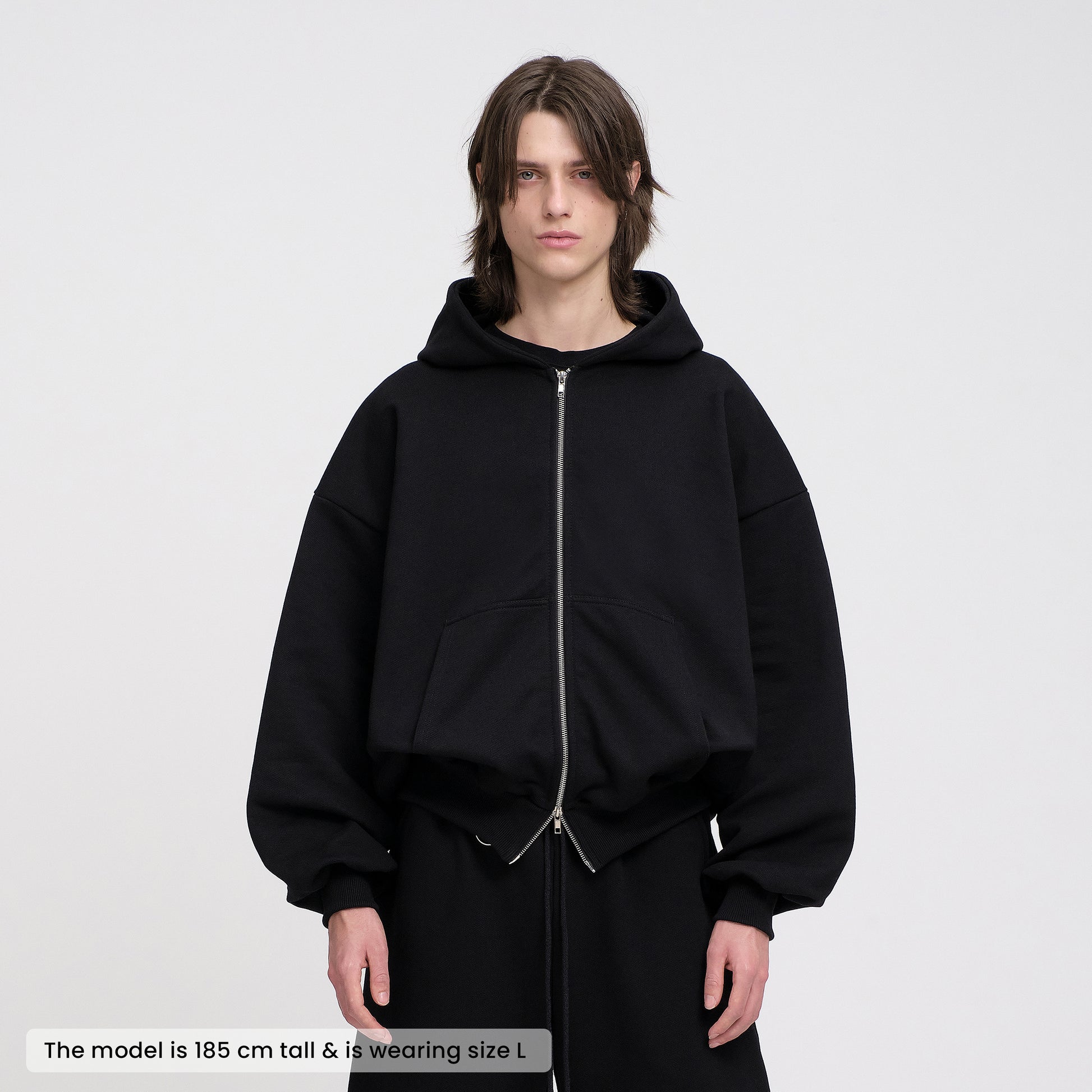Boxy Ultra Heavyweight Double Zip Hoodie (Black)