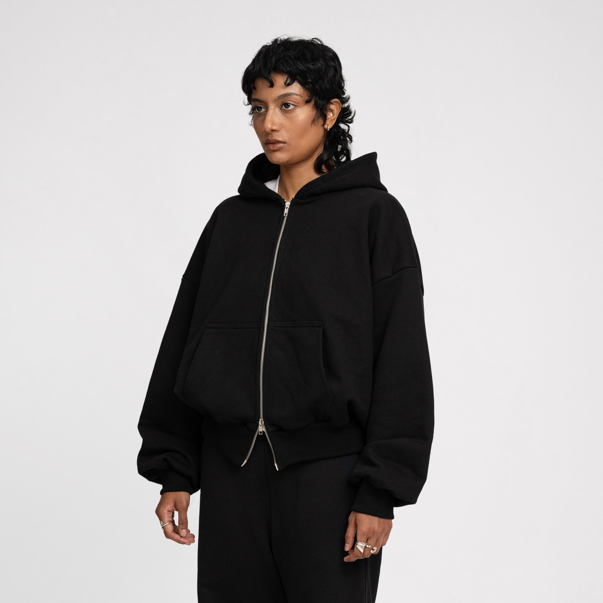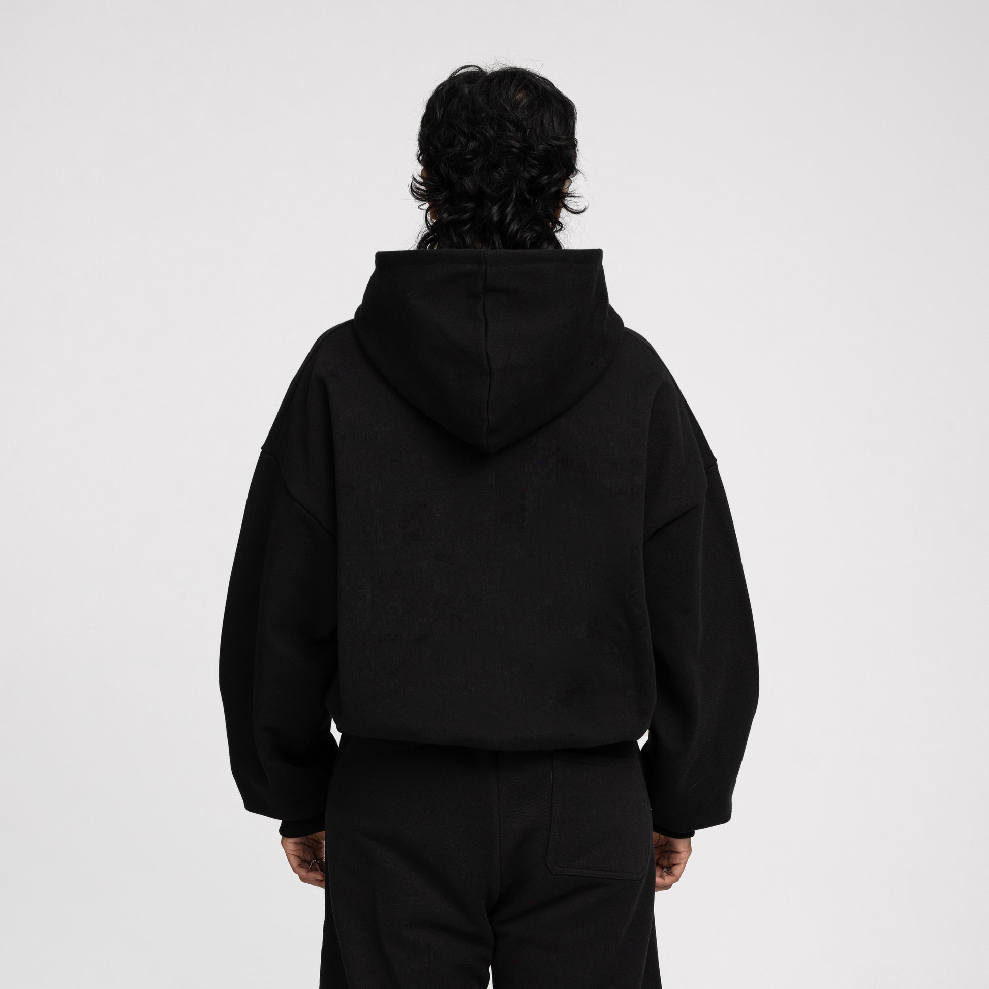 Boxy Ultra Heavyweight Double Zip Hoodie (Black)